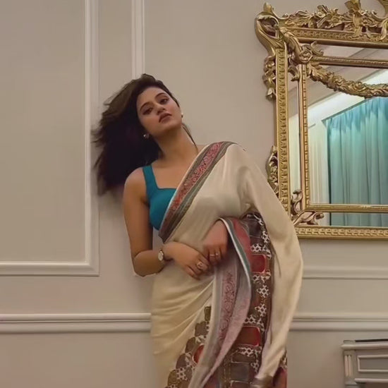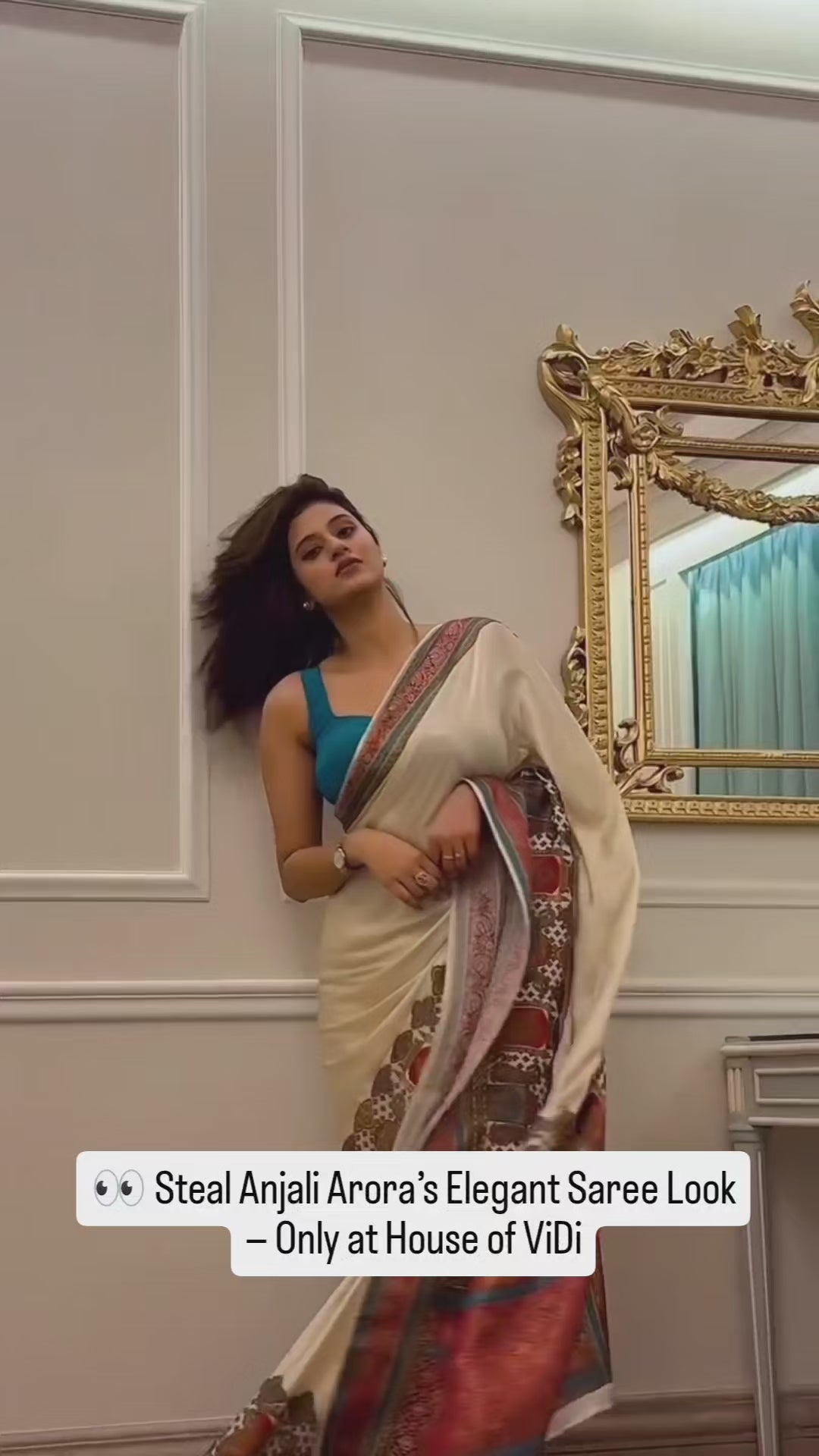 Anjali Arora Inspired Gajji Silk Ajrakh Saree with Rich Pallu & Contrast Blouse