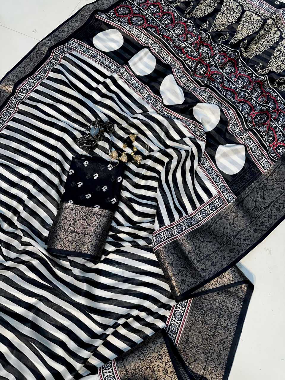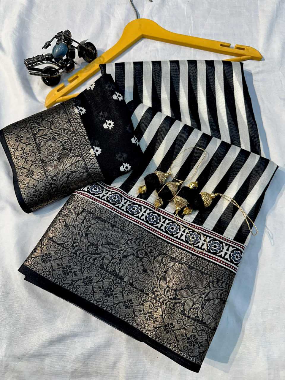 Black Soft Semi Dola Saree with Weaving Border & Contrast Blouse – Elegant Festive & Office Wear Saree
