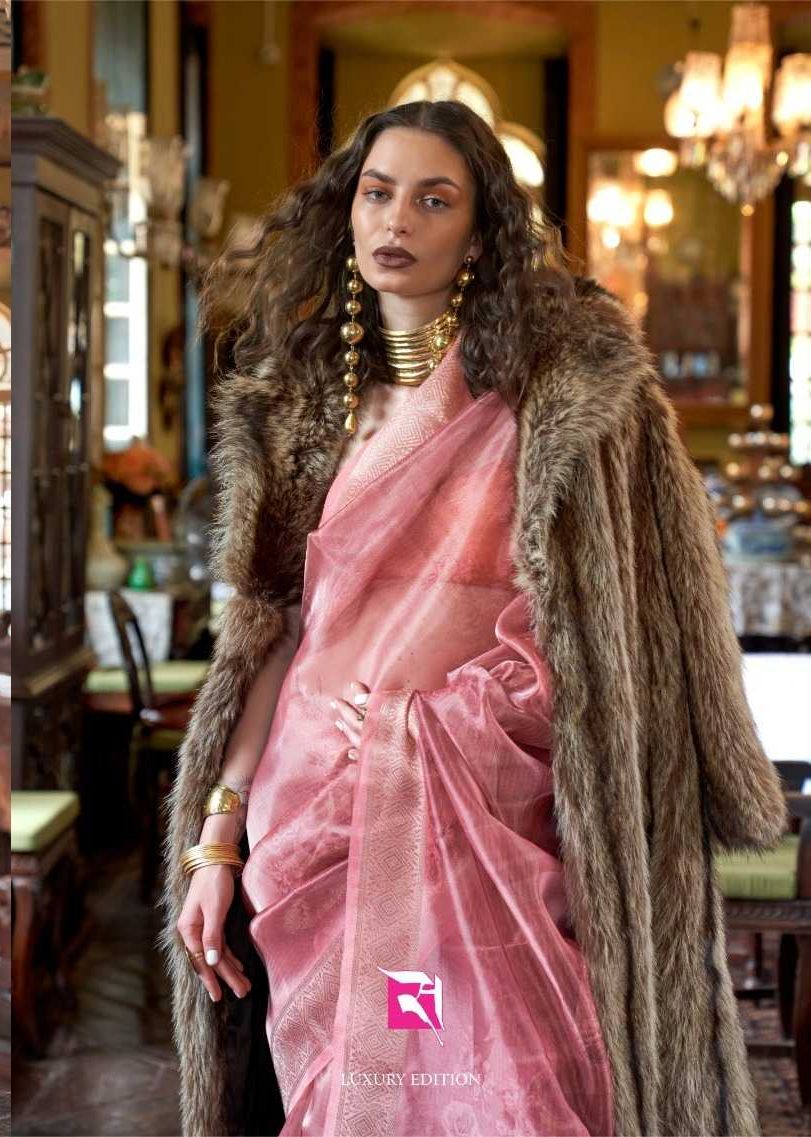 Pink Banarasi Weave Organza Saree with Digital Print – Designer Fancy Silk Saree for Weddings & Parties