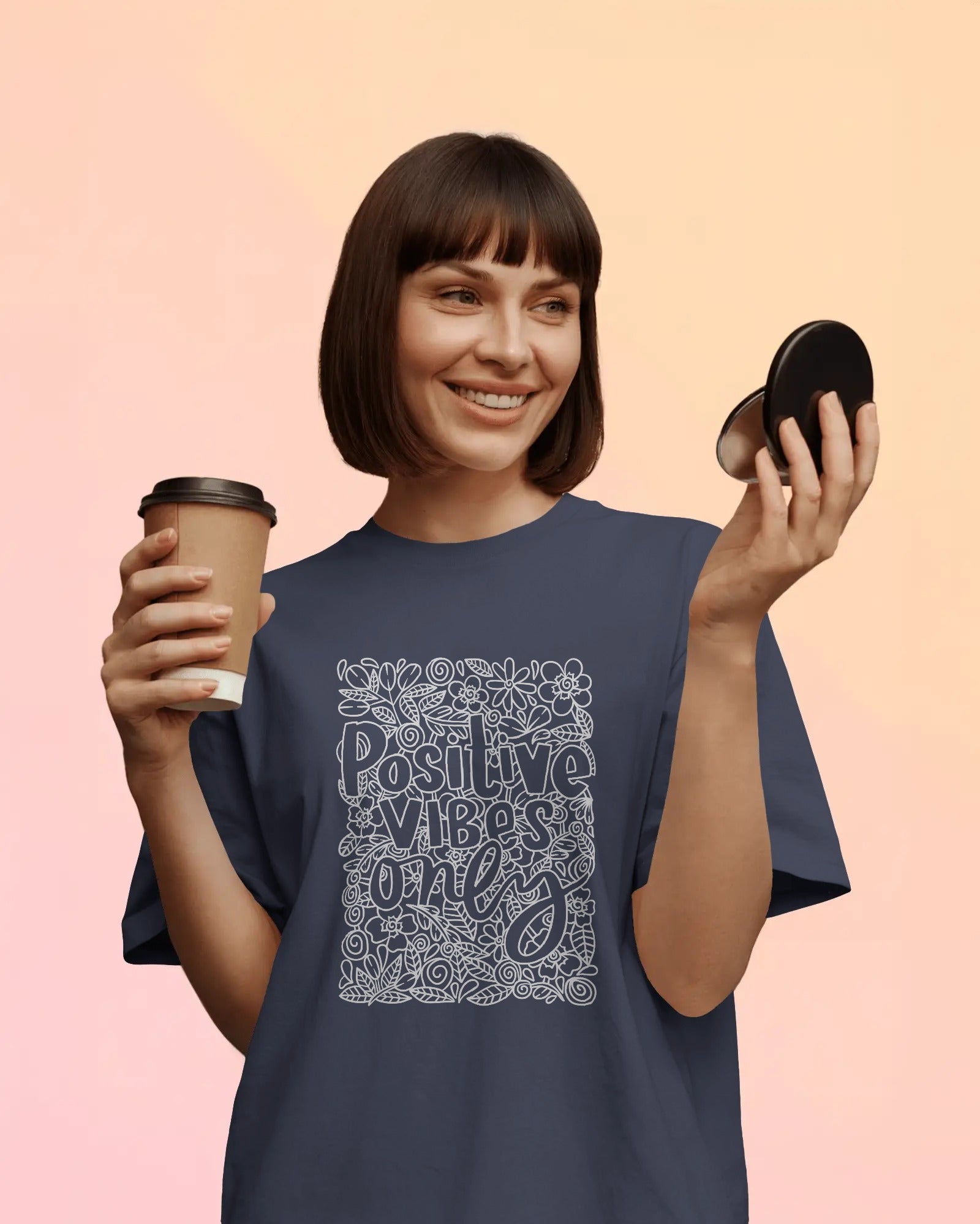 The Positive Vibes Only Oversized T-Shirt is a reminder to lead with optimism, warmth, and self-belief.